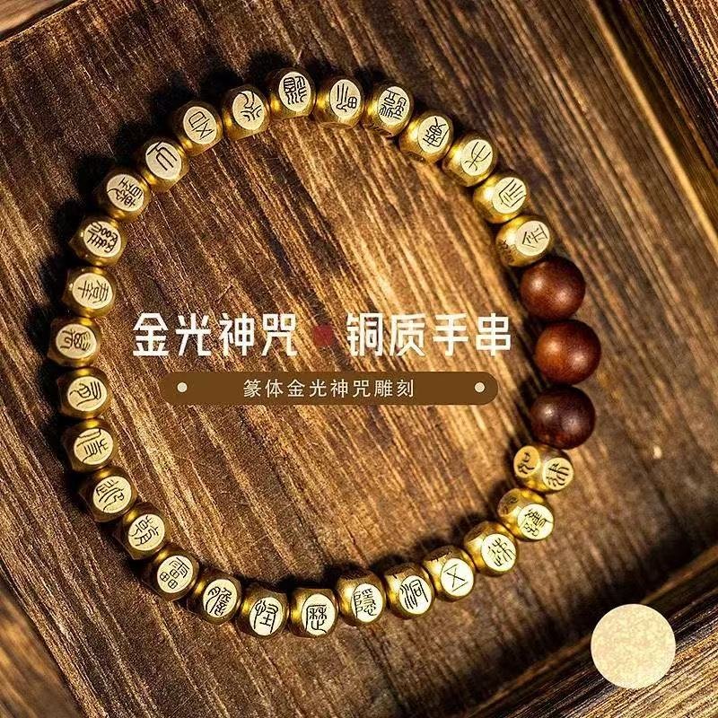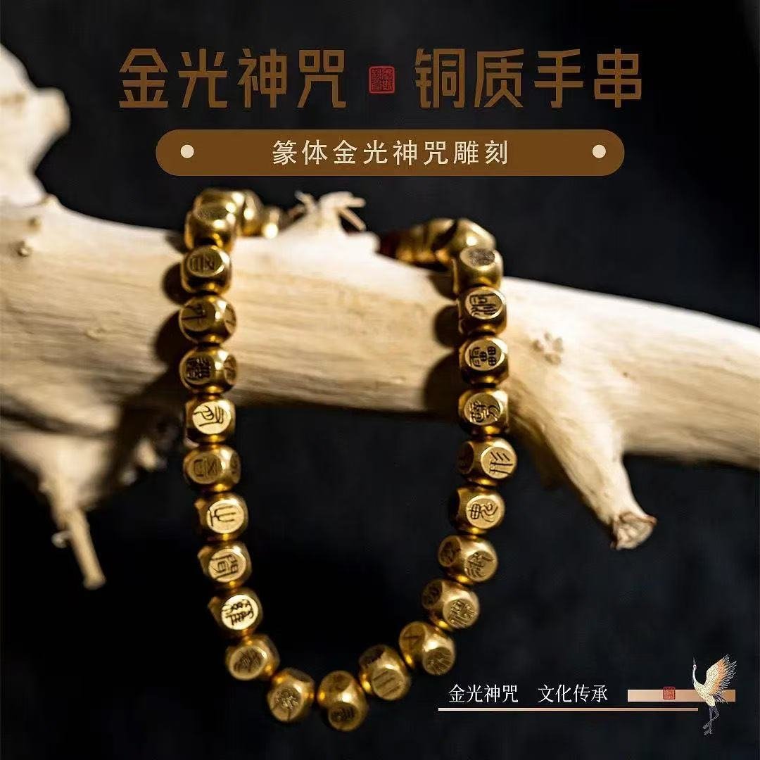 纯铜篆书金光咒手串道系饰品 师傅祝福